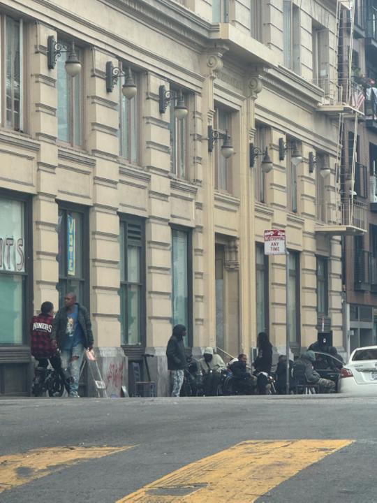 白天他们在长椅上呆坐着,把行李箱放在长椅下面,被子放在长椅后面。饿了去救助站领取免费食品,或去垃圾桶里翻找食物。有的坐在便利店门口垃圾桶旁边,一言不发地等着路人施舍食物或零钱。还有的长年在麦当劳里蹲点守候,从垃圾桶里熟练地掏出别的顾客扔掉的食物。流浪汉之间也会互助,有的流浪汉拿到了食物,会分给其他更需要帮助的流浪汉。毒瘾发作时,他们会以同一个姿势僵住半天,看上去就像被冻住了一样。有精神病的流浪汉会在路上大喊大叫,或对着路灯、红绿灯说很久的话。